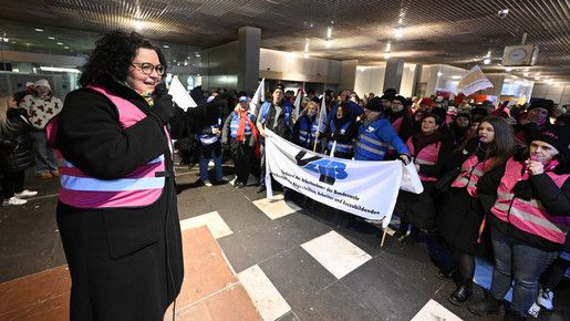 Beschäftigte der Bundesagentur für Arbeit (BA) sind in Nürnberg für eine faire Bezahlung und bessere Arbeitsbedingungen auf die Straße gegangen.