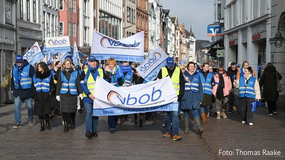 Am 4. März 2025 bestreikten etwa 150 Mitglieder des vbob das Kraftfahrt-Bundesamt in Flensburg.