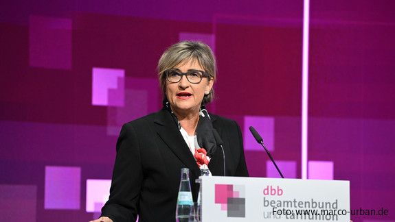 Denn mittlerweile seien knapp zwei Drittel der Bürgerinnen und Bürger der Ansicht, dass der Staat mit seinen Aufgaben überfordert sei. „Allerdings liegen die Ursachen für diese Missstände nicht bei den Kolleginnen und Kollegen, die Tag für Tag mit Herzblut ihrer Arbeit nachgehen. Nein, es sind die Entscheidungen der Politik, die uns an diesen Punkt gebracht haben“, erklärte Fleischmann. Aktuell geht der dbb von einer Personallücke von 570.000 Stellen aus. Trotz dieser und weiterer Belastungen leisteten die Beschäftigten eine hervorragende Arbeit, machte die stellvertretende dbb Bundesvorsitzende deutlich. „Die Tätigkeit im öffentlichen Dienst ist mehr als die Zeit, die sie am Arbeitsplatz verbringen. Es ist der Dienst am Gemeinwohl, die Arbeit am großen Ganzen. Diese Sinnhaftigkeit ist das, was junge Menschen suchen, deshalb kann der öffentliche Dienst hier bei der Nachwuchsgewinnung punkten.“