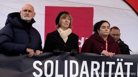 Arbeitgebende und Gewerkschaften versammelten sich am 17. Februar 2025 gemeinsam vor dem Verhandlungsort in Potsdam, um ein Zeichen der Solidarität zu setzen und ihrer Trauer und ihrem Ärger Ausdruck zu verleihen. Am Donnerstag zuvor war ein Mann aus Afghanistan in München mit seinem Auto in eine Demonstration der Gewerkschaft ver.di gefahren. Eine Mutter und ihre zweijährige Tochter kamen bei dem schrecklichen Anschlag ums Leben. Außerdem wurden über 30 Menschen zum Teil schwer verletzt.
