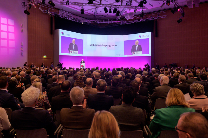 Auf der 61. Jahrestagung des dbb in Köln befassten sich mehr als 700 Gäste und Delegierte mit den Zukunftsperspektiven des öffentlichen Dienstes in Zeiten komplexer werdender Anforderungen. Neben Bundesinnenminister Horst Seehofer und Bundestagspräsident Dr. Wolfgang Schäuble beteiligten sich zahlreiche hochrangige Vertreterinnen und Vertreter aus Politik, Verbänden und Wissenschaft mit Redebeiträgen und in Diskussionsrunden an der Gestaltung der Zukunft des öffentlichen Dienstes. Der Bundesvorsitzende des dbb Ulrich Silberbach bezeichnete den öffentlichen Dienst in seiner Auftaktrede als „Sanierungsfall“ und forderte eine massive Aufstockung des Personals sowie eine schnelle und sinnhafte Digitalisierung, um den öffentlichen Dienst „fit für die Zukunftsaufgaben zu bekommen.“ Das Credo des dbb: Der öffentliche Dienst der Zukunft muss agil, vielfältig und digital sein. Um die dazu notwendigen Modernisierungs- und Transformationsprozesse anzuschieben, hat der dbb auf der Jahrestagung am 7. Januar 2020 ein Werkstattpapier zur Modernisierung des Staatsdienstes vorgelegt und einen Dialogprozess dazu gestartet. „Nur ein personell wie technisch gut und vielfältig aufgestellter, modern agierender und beweglicher öffentlicher Dienst wird die Herausforderungen der Zukunft meistern und seine Arbeit mit der Rückendeckung einer breiten gesellschaftlichen Akzeptanz leisten können“, erklärte der dbb Bundesvorsitzende Ulrich Silberbach.