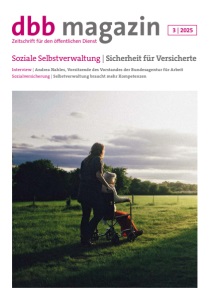 dbb magazin Soziale Selbstverwaltung | Sicherheit für Versicherte Interview | Andrea Nahles, Vorsitzende des Vorstandes der Bundesagentur für Arbeit Sozialversicherung | Selbstverwaltung braucht mehr Kompetenzen 3 | 2025 Zeitschrift für den öffentlichen Dienst