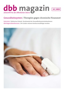 dbb magazin Gesundheitssystem | Therapien gegen chronische Finanznot Interview | Katharina Schenk, Vorsitzende der Gesundheitsministerkonferenz dbb-Regionalkonferenzen | Die Länder müssen konkurrenzfähiger werden 10 | 2025 Zeitschrift für den öffentlichen Dienst
