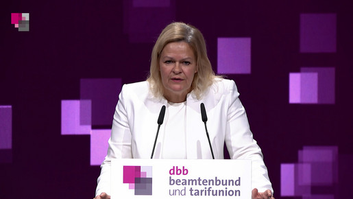 Ulrich Silberbach im Gespräch mit Bundesinnenministerin Nancy Faeser, moderiert von Anke Plättner