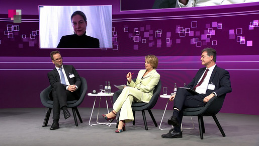 Philipp Amthor, Mitglied des Deutschen Bundestages, Katja Dörner, Oberbürgermeisterin der Bundesstadt Bonn, Christian Dürr, Vorsitzender der FDP-Bundestagsfraktion, Dr. Markus Optendrenk, Minister der Finanzen von NRW, Philippa Sigl-Glöckner, Direktorin und Geschäftsführerin vom Dezernat Zukunft, Moderation: Anke Plättner